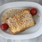 油炸鹰嘴豆?是种炸羊乳酪再配蜂蜜的吃法,我觉得乳酪太咸,配上甜蜂蜜也总是觉得有点怪怪的...