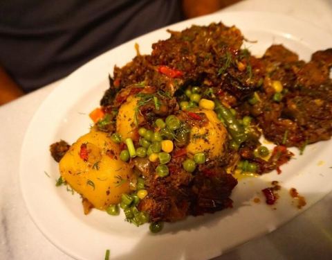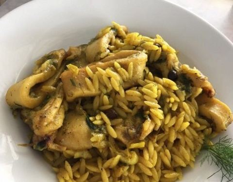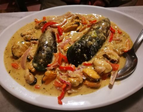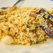 老公喜欢羊腿,两次都吃了羊腿,我点了海鲜饭,烤虾、炸奶酪和油炸鹰嘴豆,海鲜饭料蛮多的,有点咖喱味和 西班牙 海鲜饭两个概念。
