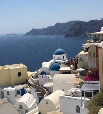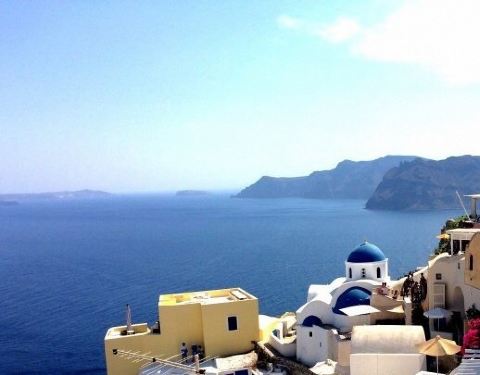 到了伊亚,怎么能不看夕阳?在这家店里,你就可以边享受晚餐,边欣赏夕阳美景,而且还能看到附近的蓝顶教堂(顺便还有很大机率能看到大妈爬到别人屋顶上自拍……) 食物方面点了伊亚意面和炖猪肉饭,其中猪肉饭的...到了伊亚,怎么能不看夕阳?在这家店里,你就可以边享受晚餐,边欣赏夕阳美景,而且还能看到附近的蓝顶教堂(顺便还有很大机率能看到大妈爬到别人屋顶上自拍……) 食物方面点了伊亚意面和炖猪肉饭,其中猪肉饭的酱汁非常合我口味,最后几乎要舔盘子了。价钱方面会比一般的店高一些。由于大家都是奔着景色来的,边上的座位很难占,如果有时间的话可以直接等边上的座位,景色是不会辜负你的。