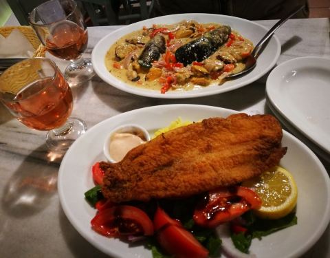 环境很好,一边享受美食,一边欣赏日落。点了炸鱼,鱼汤,食材很新鲜,据说都是当天捕捞的,鱼肉很有弹性,鱼皮炸得酥脆,非常好吃,配了柠檬水也非常好喝,值得推荐。