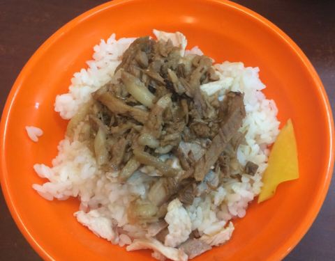 这是嘉义的又一家火鸡肉饭餐馆,问朋友才知道这是嘉义的特色美食。一碗米饭上淋了一些汤汁,几块火鸡肉,拌匀后吃起来很爽口,真是价廉物美。