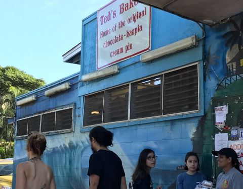 Ted's Bakery是一家位于日落海滩(Sunset Beach)附近的美食餐厅,主要供应美国风味和夏威夷当地菜肴,各种烘焙糕点、面包。他家最出名的就是好吃的巧克力奶油馅饼,强烈推荐尝试。这里的蛋糕、羊角面包、热狗也都很不错。