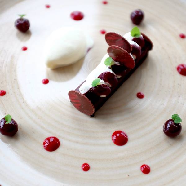 盘子里装饰的果酱也是可以缓解苦味的另一道甜品是草莓味冰淇淋