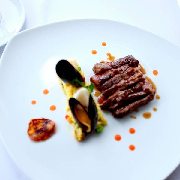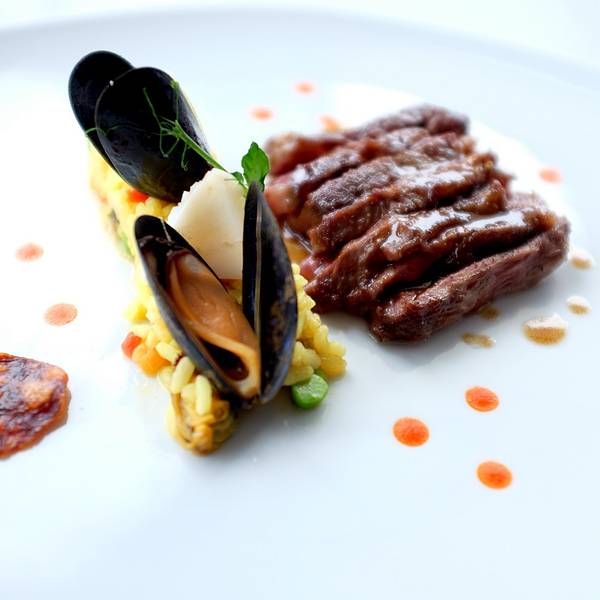 可以根据个人喜好,单独吃味道也不错牛肉这道主菜是带米饭,海鲜贝类的