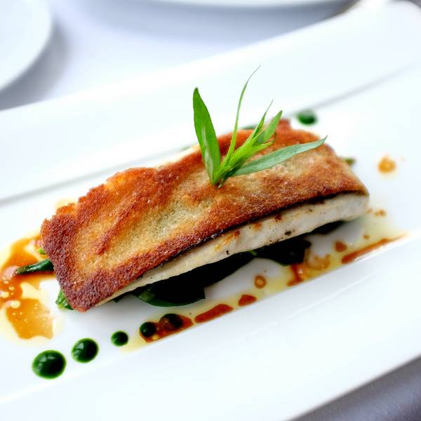 鱼的肉质算是比较嫩的,但味道一般搭配的白色小份酱汁吃起来轻微的酸度
