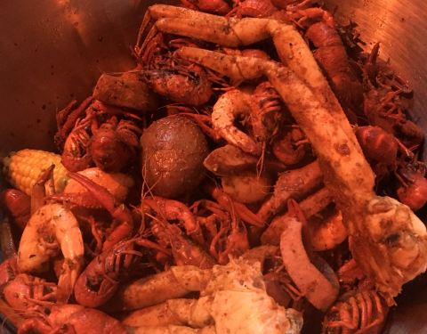 - Crawfish, crab, shrimp, potatoes, corn and saus...