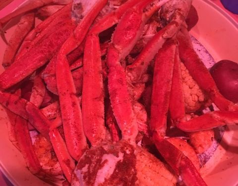 属于酒吧式餐厅。装修的看上去比较简陋,内部光线呈暗红色,放着音乐音量大。我们去的时候已经没有小龙虾了,于是点了一份雪蟹。蛮辣的,除了蟹腿还有很多香肠,玉米之类的。加上一些餐前面包,两个人吃正好。蟹腿不是很饱满,吃不出满足感。价格不算便宜,两个人要80多美元。还是要小龙虾季节来。