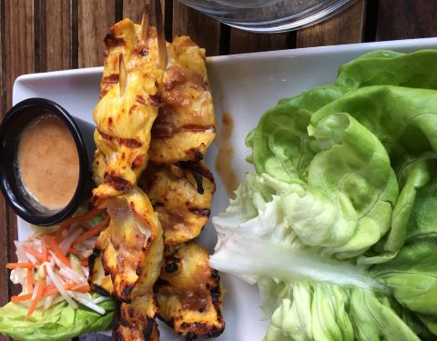 - Table Service 5/10 Edamame notbadChicken satay ...
