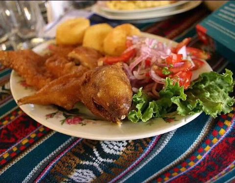 带游客品尝秘鲁特色烤豚鼠Cuy! 初见这道秘鲁菜你可能是拒绝的,但如果你抱着“反正到了当地就试着吃吃”的心态小尝一口,就会惊叹:这是一道“看着吓人、放进嘴贼好吃”的神奇菜肴!因为酥炸的口感,加上调味带...带游客品尝秘鲁特色烤豚鼠Cuy! 初见这道秘鲁菜你可能是拒绝的,但如果你抱着“反正到了当地就试着吃吃”的心态小尝一口,就会惊叹:这是一道“看着吓人、放进嘴贼好吃”的神奇菜肴!因为酥炸的口感,加上调味带出的肉香,再配上印加可乐!简直太棒!来秘鲁的游客不要错过哦!
