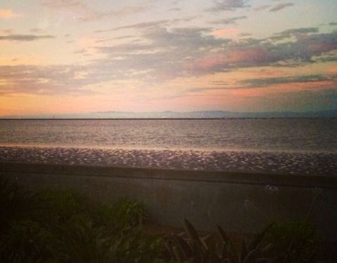 一个小餐厅,窗子隔着海面对着旧金山机场的跑道,可以看到飞机降落!