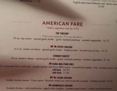 口味超好,环境超好,服务超好,份量超足,我们俩人连续两个晚餐在这消费,第一餐每人点了份不同的食物,美国特色食物餐及土豆鱼排,好吃,但没吃完打包了,第二天就只要一份餐食刚好。