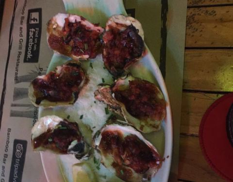 环境有点杂乱的感觉,很吵,喝喝小酒不错,聊天用餐可能不太合适,都是海鲜比较多,牛排还是可以吃到的,而且肉是现场用烤架烤的,很香脆,可能进去没怎么留意,餐厅是用竹子搭建而成的,很高挑,还很凉爽,很另类。环境有点杂乱的感觉,很吵,喝喝小酒不错,聊天用餐可能不太合适,都是海鲜比较多,牛排还是可以吃到的,而且肉是现场用烤架烤的,很香脆,可能进去没怎么留意,餐厅是用竹子搭建而成的,很高挑,还很凉爽,很另类。