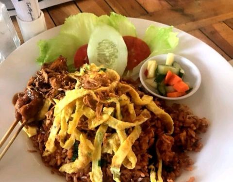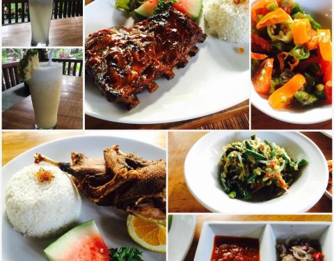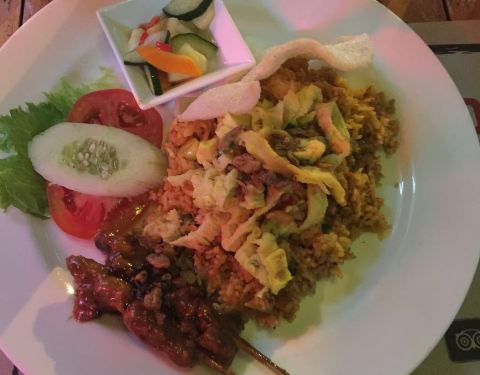- 里面的脏鸭饭和烤肉饭味道都不错的,饮料要了奶昔也挺不错的,价格在巴厘岛不算便宜,主要是吃他这里的环境