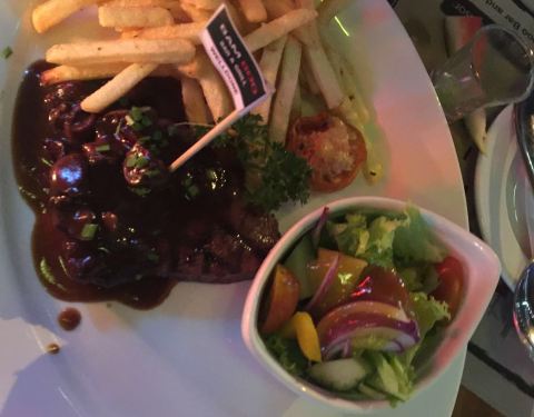 ...里面的牛排很不错,是带骨的,吃起来有点点麻烦,味道不错,类似于战斧牛排,五分熟的比较好吃一点点