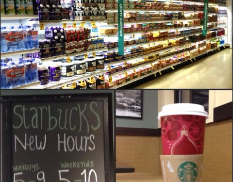 New Hours! Weekdays 5am-9pm. Weekends 5am-10pm. Starbucks is next to vons