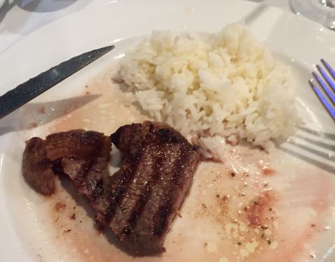 Picanha y cazuela de mariscos. El ambiente es b...