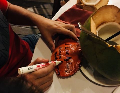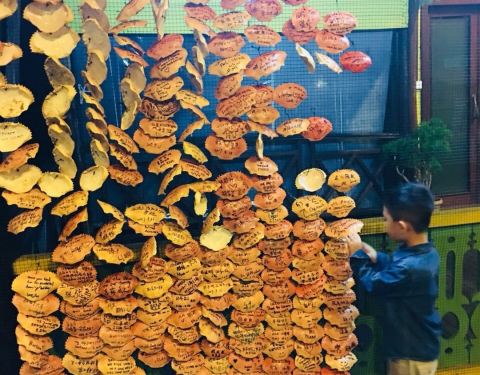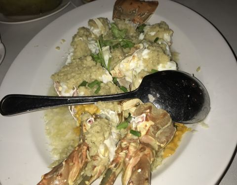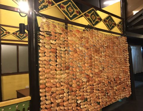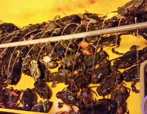 当地的水上海鲜餐厅,酒店内价格比较贵,螃蟹大概40块一百克,餐后壳子可以写字挂帘子上。