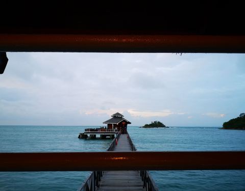 住在娜湾度假村,有班车可以直达。这里的菜品一般。价格很贵。但夕阳绝美。很多人餐后会踱到栈桥上领略南中国海的无限夕阳美和远眺。