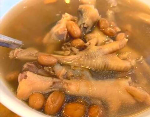 午餐来这家出名的餐厅吃药材纸包鸡。花生鸡脚汤的食材蛮多,汤浓郁美味,大家好喜欢喝