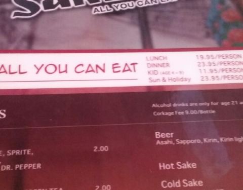 Went here on a Friday afternoon, so per person cost 23.95. Not bad actually their rolls are pretty fresh and tasty. We didn't hit our money's worth cause we snacked on our way here. Come in hungry.