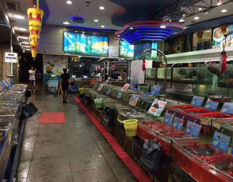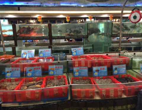 - 各种海鲜在水箱里,要啥点啥,加工好给你,基本上还是我们大中国的吃法……。一个挺大的海鲜大排档