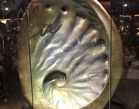 ...于吃海鲜的好地方,装修还是挺上档次的,整体不错,装饰很有新意,用超大型的鲍鱼壳造型非常吸引瞩目