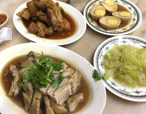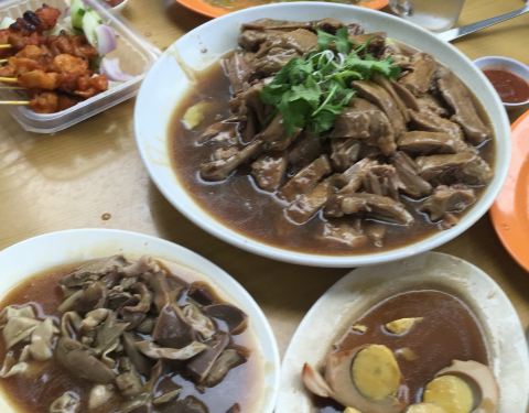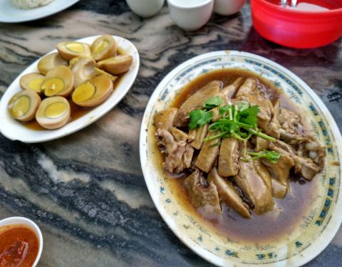 Braised duck with rice.. Not the usual kind of teow chew style porridge but is worth a try. Skip the satay as it totally sux.