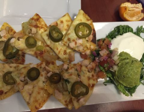 Authentic cheesy nacho slices served with avoca...