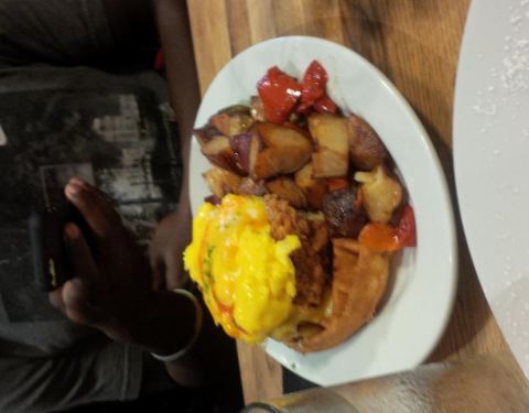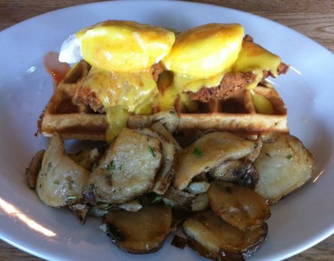 If you want to leave happy, get the chicken and waffles benedict! The flavors are unbelievable with the sweetness of syrup, the savory taste of hollandaise, and kick of spice at the end. Get it!