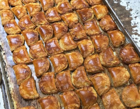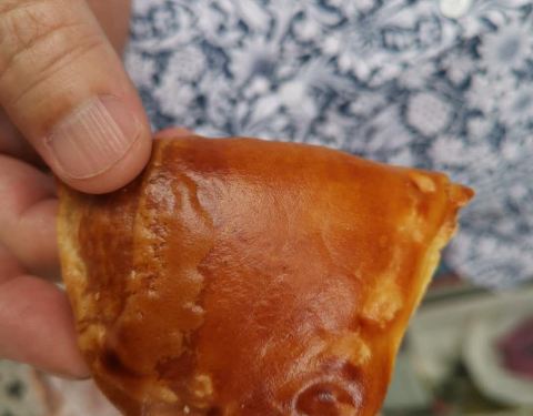 - 但是,非常好吃!我上前一看,是一家老饼店,好像在卖新鲜出炉的饼。这家的咖央角最好吃,现做现卖