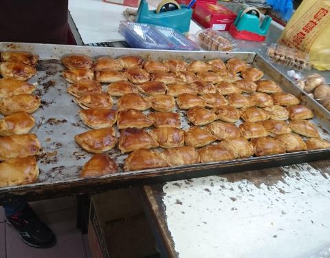 在怡保新街场逛时,发现前面一家商店有许多当地人在排队。我上前一看,是一家老饼店,好像在卖新鲜出炉的饼。我就赶紧加入队伍 先别管卖什么,反正这么多当地人在排队,一定是好吃的 原来是当地最著名的咖央角...在怡保新街场逛时,发现前面一家商店有许多当地人在排队。我上前一看,是一家老饼店,好像在卖新鲜出炉的饼。我就赶紧加入队伍 先别管卖什么,反正这么多当地人在排队,一定是好吃的 原来是当地最著名的咖央角(咖椰角)!每天下午大约三点出炉,会有好多人来排队等。看看旁边的架子还有刚烘好的咖央角,其实才开始卖不到20分钟,已经卖掉一大半了!也难怪,因为顾客都是10个、20个的买! 我一买到咖央角就迫不及待的拿来吃,还是热乎乎的。外皮很酥脆,咖椰馅浓郁香醇,不过我觉得有点太甜。但是,非常好吃!搭配一杯怡保咖啡☕️ 更完美! 这家店是老字号,有三间分行。这家的咖央角最好吃,现做现卖。店里还有售卖各种传统糕饼,真是琳琅满目。