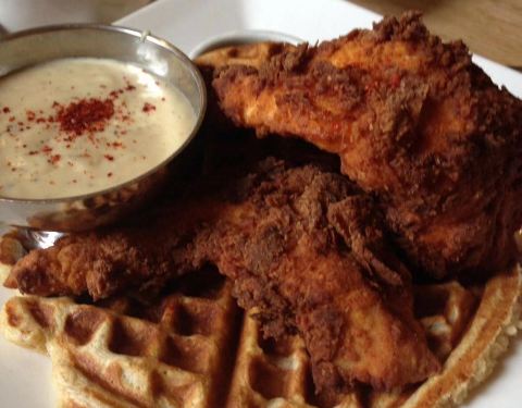 If you like chicken and waffles, then the Demon Lover is for you. A spicy fried chicken paillard (boneless) with choice of gravy, syrup, or both.