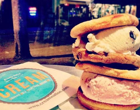 到大街小巷的 CREAM 品尝巧克力饼干冰淇淋三明治,要张开大嘴才能一口咬下大块冰激凌哦!