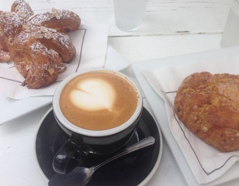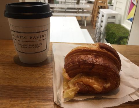 - Freshly baked goodies! Peach scone, almond croi...