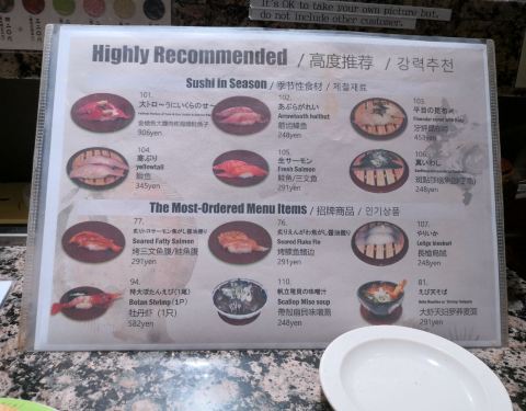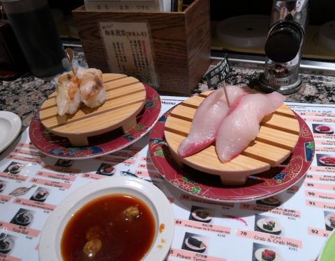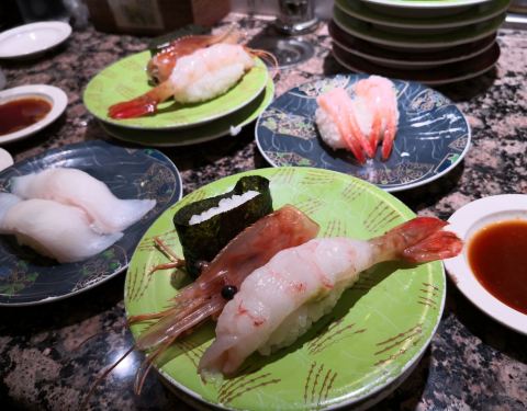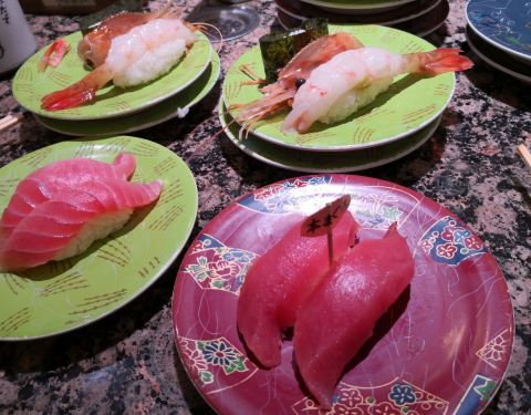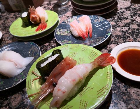 - 这家回转寿司店在札幌小有名气,品种也非常丰富,而且价格不贵。不同的颜色而不同的价格