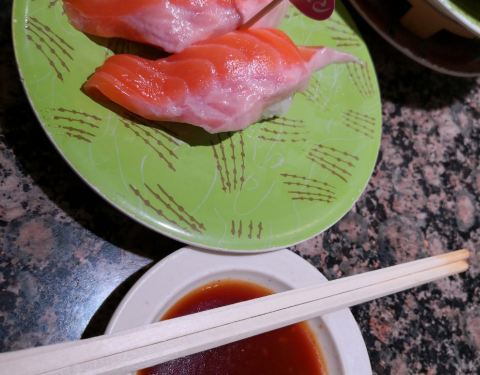 - 很好吃的回转寿司,价格也便宜,而且每份里面的东西给的也比较的多,很实惠,我们两个人吃了好多