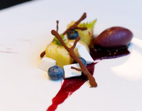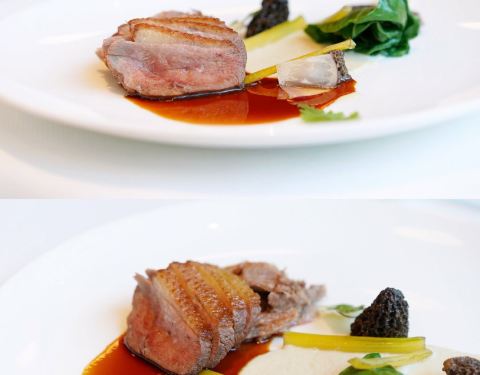 餐前面包是Sourdough和White Ciabatta 前者清冷酸香 后者外脆内韧松软热乎 自制黄油有着柔软如冰淇淋般的质地 点缀一小撮海盐 然后是一道Gravlax鱼肉炸丸子的Amuse Bouche 第一道是Toque招牌 唯一常年不变的菜式。 来自Magdalen Islands的新鲜扇贝 不算大但质感细腻柔嫩 亮点在于随着季节变化的汁水和泡沫。8月是蓝莓和龙蒿草 食材自然的酸甜清新 最大程度的带出了扇贝的甜鲜 拜服 黄色鸡油菌那道也超级喜欢 在加拿大深深爱上媲美松露的鸡油菌! 鹅肝是远超期待值的一道。 毕竟双语城市 听说魁北克不会做鹅肝的厨师是不存在的。鹅肝煎得肥嫩不腻 脂香太迷人了 一大块下去竟然意犹未尽! 配料是树莓 开心果和樱桃莓果酱 北美的树莓樱桃也夸了好几遍了 果酸馥郁 汁水甜香 跟鹅肝简直完美融合 下面这道Carpaccio全场最佳! 人生第一次吃到热的生牛肉 无比薄嫩的牛肉 抹上橄榄油 卷上油浸鸡油菌 黑橄榄等丰富的食材 大口吞下去 都是腌渍或发酵的味道 极具风味 加上牛肉本身饱满的鲜甜微酸 微妙的发酵气息 简直好吃哭 吃过牛肉的各种做法 就这个实在太惊艳了!很难有餐厅能复刻出一样的味道了吧