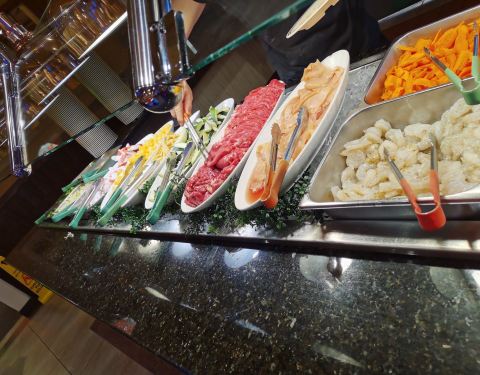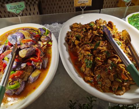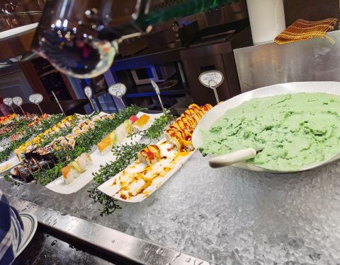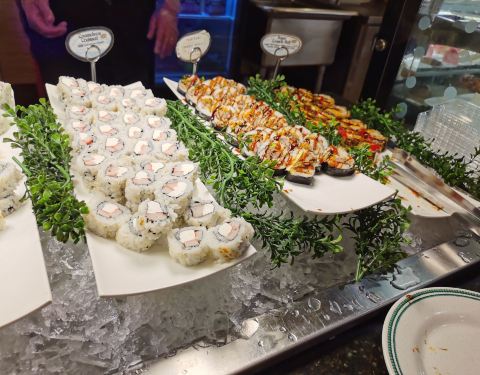 环境非常好,自助餐,二十刀一位,品种丰富,海鲜非常多而且新鲜,菜品偏甜味,口感不错,很多美国人在此就餐,很多中国菜品。有一个美丽的巧克力喷泉,三种口味的冰淇淋,很多种海鲜寿司,非常棒的自助餐厅!