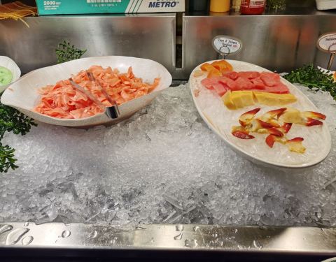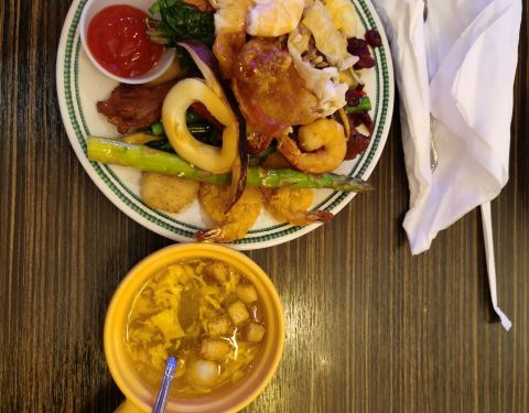 环境非常好,自助餐,二十刀一位,品种丰富,海鲜非常多而且新鲜,菜品偏甜味,口感不错,很多美国人...