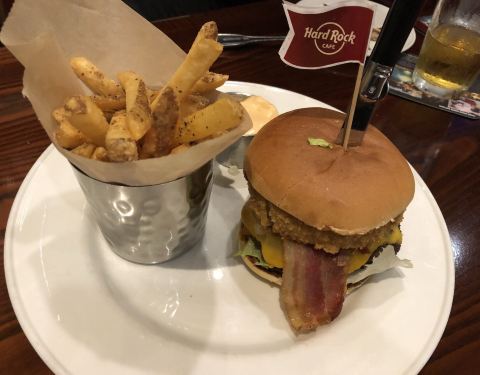 Hard Rock尼亚加拉瀑布附近的餐厅,位置优越,有现场音乐表演,生意还蛮好的。我们点了前盘套餐、主打汉堡、当地的两种啤酒,口味真是退步了,好在啤酒还行。结账时,竟然多列了旁桌的两份餐点,真是无语。顾客基...Hard Rock尼亚加拉瀑布附近的餐厅,位置优越,有现场音乐表演,生意还蛮好的。我们点了前盘套餐、主打汉堡、当地的两种啤酒,口味真是退步了,好在啤酒还行。结账时,竟然多列了旁桌的两份餐点,真是无语。顾客基本没有什么年轻人。再这样下去,够呛!
