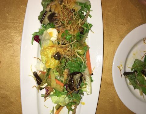 这里出名的是中午的西式自助,不过我们吃的是晚餐,两种套餐之一,但必须至少点二份。味道很棒,真材实料没的说,几道菜各有各的美味,赞!因为是预订,尽管客人不多,所有店员在岗,热情周到地服务,真是没的说!主菜烤鸡,香气扑鼻,皮焦里嫩,可惜只顾吃忘拍照了