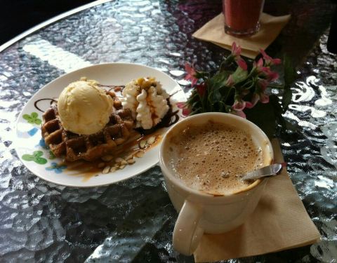 这家咖啡厅就在美术馆附近,所以也非常的漂亮,而且他们的咖啡真的很好喝,拉花做的很好看,价格也还不错吧,跟星巴克一个水准。