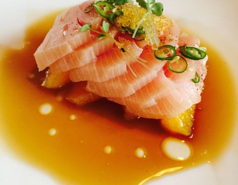 Salmon Sashimi ,Cauliflower tempura,shrimp tempura,sake kosho,inada all tasty worth to try hundreds time