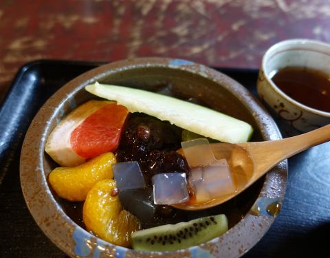 很古朴的日式甜品店,店主也非常亲切,吃着水果啫喱看着窗外和式庭院,找到了日式夏天的感觉