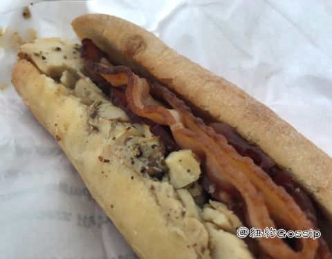 这次来到星巴克点了好像是新出的鸡肉和培根的帕里尼,培根分量是让人满意的