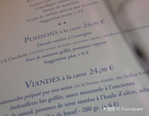 We tried the Chateaubriand. It was rather an overcooked roast beef and the potatoes were only half cooked. The fries were soggy. The whole thing was expensive but presented without love or taste. - Ne surtout pas prendre les moules "maison" qui ...