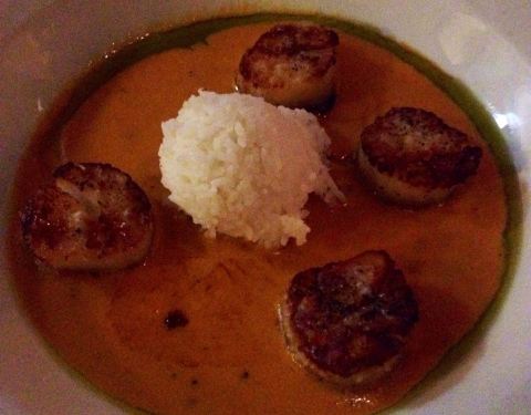 Seared sea scallops: the smoked tomato beurre blanc and basil oil make this dish what it is .. delicious.