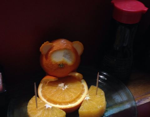 Service was awesome!! decent sushi too =). We got a bear made from oranges for free.