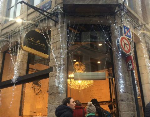 这是里尔一家很不错的甜品蛋糕店,这家店已经有近百年的历史,制作的甜品蛋糕款式新颖,颜色搭配丰富,口感也非常的好,生意很不错,价格比较适中,一定要来尝尝。