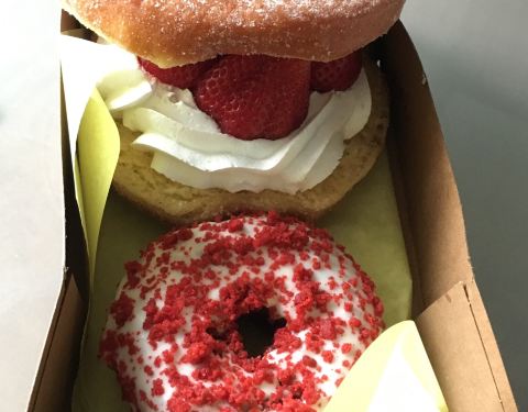 The cinnamon sugar and strawberries was delicious! But cream was preserved - fresh always tastes better. Consider changing. Red velvet was rich, but as its small it was easy to finish.